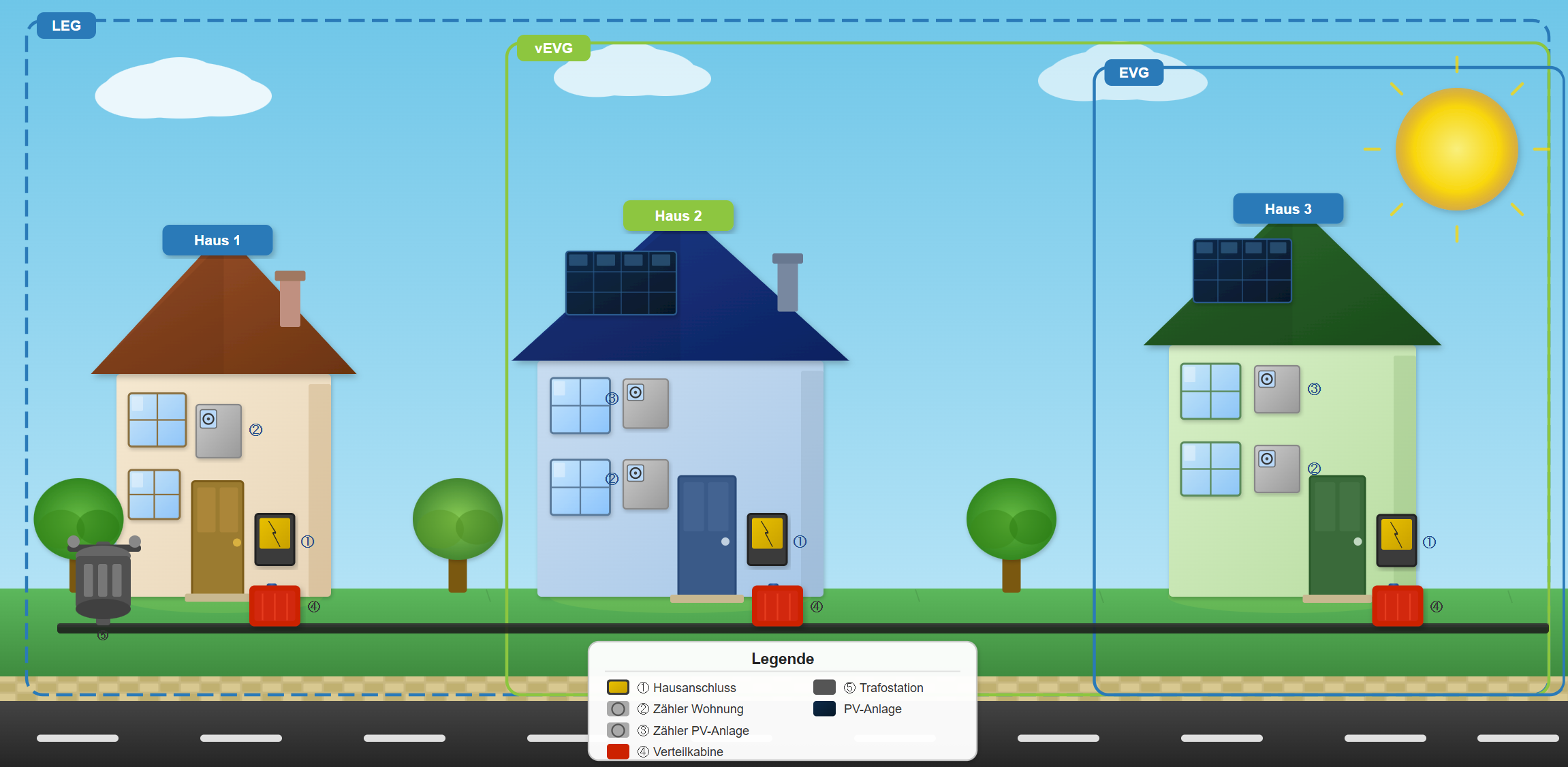 EVG, vEVG & LEG – einfach lokal Solarstrom teilen, fair abrechnen, Kosten senken.